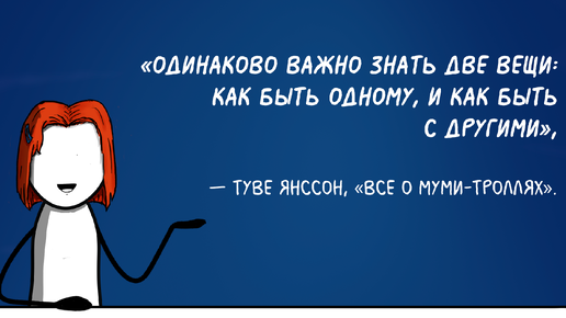 Сегодня на связи Настя, автор Добрых Комиксов: «Одинаково важно знать две вещи: как быть одному, и как быть с другими», — Туве Янссон, «Все о Муми-троллях». Сердечно люблю эту фразу, как и самих Муми-троллей, и сегодня я вспомнила про нее не случайно, ведь мне хочется поднять с вами тему одиночества. Довольно часто, особенно на начальных этапах познания себя, к желанию перемен нас приводят трудности в отношениях с другими. Родными, друзьями, коллегами, начальниками и так далее. Видя, как мы реагируем...