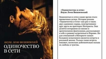 Из того, что вечно, самый короткий период у любви" - строки, ставшие эпиграфом к "Одиночеству в сети" - дебюту современного польского прозаика Януша Вишневского. О его содержании отчасти можно судить по названию. Любовь, одиночество и Всемирная паутина - вот три кита, на которых построен роман. Актуальная тема отношений в сети, созвучная многим в наше время, привлекла множество читателей. Однако не все из них восхищаются романом. Отзывы о нем как восторженные и возвышенные, так и резко отрицательные...