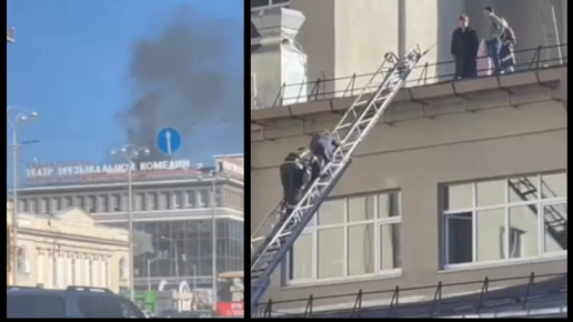 Видит весь ЕКБ, полыхает театр музкомедии в центре города, люди спасают через крышу, лезут во все окна. 10 человек заблокированы.