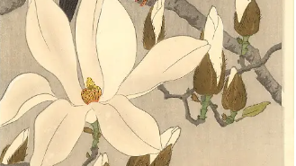 Художник Охара Косон, чье настоящее имя Охара Матао, был одним из интереснейших мастеров японской гравюры XX века. Он начинал как живописец, в юности Косон учился живописи у Судзуки Касона, художника школы Маруяма-Сидзё, и вплоть до 1926 года использовал псевдоним Косон. Позже он изменил имя на Сосон, которым и подписывал свои работы до конца жизни. Художник Ohara Koson родился в в 1877 году в городе Канадзава. в префектуре Исикава на севере Японии.С 12 лет он начал обучаться живописи в школе,а в возрасте 22 лет переехал в Токио...