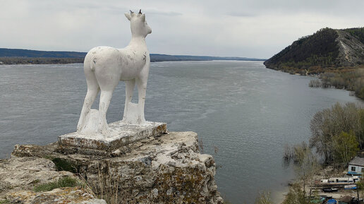 После того как мы с вами прогулялись по Жигулёвску в поисках архитектурных достопримечательностей... Отправимся за пределы города к берегу Жигулёвского моря. Жигулевское море – это неофициальное название Куйбышевского водохранилища, самого крупного на Волге и третьего по величине на планете! Его длинна – более 500 километров, а общая площадь водной поверхности – 6,5 тысяч километров. Нашей целью стала гора Могутова, а точнее утёс Скальный, расположенный на ней, где в 90-е годы 20-го века неизвестный автор разместил скульптуру горного козла...