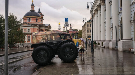 Осенью завозили Шерп на выставку, чтобы презентовать наш проект про путешествие по Якутии. Гостиный Двор, самый центр Москвы, Красная Площадь - на расстоянии сотни метров, кругом всевозможные охранники и сотрудники ФСО, все круче некуда. Заранее померили все пандусы и лестницы внутри. Стало понятно, что по пандусу машина не заедет - слишком широкая. С большим трудом согласовали самостоятельный заезд на вездеходе по лестнице. Ну, в принципе, если машина не повреждает тундру, то и гранит не поцарапает...