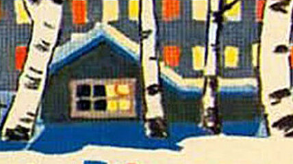 Я смотрела и ничего не видела. Достаточно типичная для 60-х новогодняя открытка. Автор женщина - Ольхова Ия Владимировна. А женщины они существа коварные. Посмотрите на маленький деревенский домик, он на переднем плане но его сразу не разглядишь. Надо немного остановить взгляд. А теперь почувствуйте этот дом. Он такой родной, маленький уютный. Что он здесь делает? Как прокрался между многоэтажками? Они его вот вот раздавят. Художница душу разорвала этим домиком А теперь смотрите на окно, видите горит только одно окошко? А второе окошко темное...