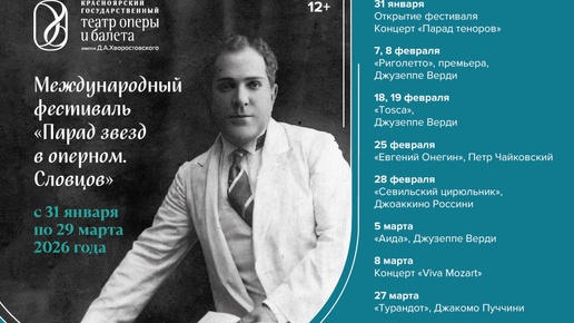«Парад звёзд в оперном. Словцов» - яркого события культурной весны, объединяющего мировых солистов и дирижёров на сцене одного из ведущих театров России. «За два месяца Красноярск посетят 12 солистов...