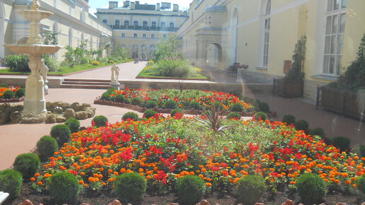 Цветники Петергофа Цветники исторических, дворцово парковых композиций всегда были основным элементом паркового ансамбля. В Петергофе оно отличалось большим разнообразием. От узорчатых клумб до партерного газона. Барочный рисунок цветников в 18-в. был неотъемлемой частью регулярного сада. Монплезир любимый дворец Петра. Был построен одним из первых в Петергофском ансамбле. Разбитый возле него садик представлял квадрат обсаженный самшитом с фонтаном по середине. В 19-в. На смену регулярному стилю пришел стиль пейзажный...