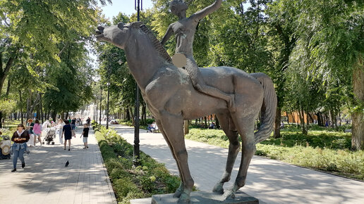 Даже не знаю, что об этом памятнике думают многочисленные отдыхающие (как дети, так и взрослые), которые приходят в парк «Орленок» – гордость города-миллионника, между прочим. А задуматься есть о чем. Прямо у центрального входа их встречает красивая в целом статуя, изображающая скачущего на коне мальчика – пионера-героя Орленка. И все бы ничего, ... вот только он совершенно голый. Получается, что всех все устраивает? Никого не возмущает голый мальчик на коне, которого невозможно не заметить. А может, все делают вид, что «так и надо»...