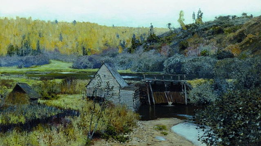 Левитан. "Осень. Мельница. Плес" 1888 год. Выдержка из переписи Л. Поскочина 1680 года, где указаны мельницы и рыбные ловли крестьян Вехотурской подгородной волости. /набор Коновалова Ю.В./ У подгородных ж крестьян мельницы. А что с тех мельниц оброку платят и вновь на те мельницы оброку наложено и на кого имяны, и то писано ниже сего. Мельница Ларки Васильева сына Пинаева с Ывашком Собиным с товарищи на речке Жерноковке. Оброку платят рубль. Мельница Панфилка Федорова сына Трубина. Оброку платит шестнатцать алтын четыре денги...