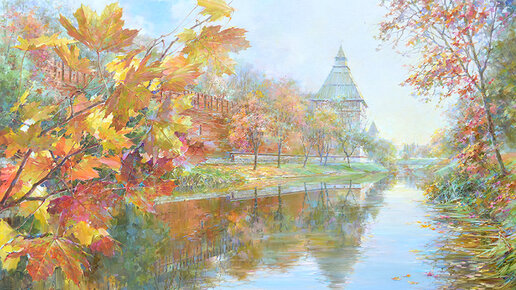 С чего начинается осень? Солнце меньше греет землю, отдав свое тепло листве. Листва, напитавшись солнечным светом, меняет цвет. Зеленое море превращается в желтое и красное, подражая солнцу. И это не листья уже колышутся на ветру, цепляясь за ветки, а маленькие солнышки. И такая тишина стоит, что кажется, будто ею пропитано все вокруг! Особенная тишина. Осенняя, золотая. Олег Тимошин умеет не только почувствовать подобное состояние природы, но и написать его. У него и краски в тюбиках особые – осенние...