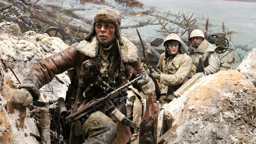 Мультимедийный зал в красно-серых тонах. В витринах вдоль одной из стен — оружие и личные вещи советских воинов, найденные поисковиками на Невском пятачке. Лаконичная подпись "Дурнов Миша" на пробитой армейской фляжке. Рядом — обстоятельно подписанный армейский котелок: "Берюлев Иван Константинович. 1909-го года рождения. Калининской области". Название района и деревни прочитать трудно: война оставила многочисленные следы на котелке. Экскурсовод приглашает нас присесть. В зале приглушается свет...