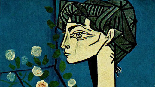 Всех своих возлюбленных Пикассо рисовал по-особенному, каждый раз как будто создавая новый стиль под определенную женщину. Не стала исключением и Жаклин Рок. Большинство ее портретов написаны в легко узнаваемом стиле позднего Пикассо, картина «Жаклин с цветами» - одна из самых ярких работ этого периода.