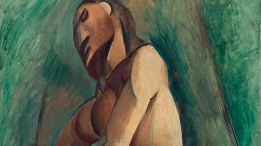 Это полотно представляет собой важный момент в раннем развитии кубизма Пабло Пикассо (1881–1973), особенно когда он начал отходить от более описательной манеры письма и натуралистической палитры «Авиньонских девиц» (1909) к более холодной, утончённой и аналитической фазе. Монументальная, похожая на гору фигура «Сидящей обнажённой женщины» демонстрирует уважение художника к купающимся фигурам Сезанна, а также любовь к африканскому и океаническому искусству, с которым он и другие художники познакомились в Париже в начале двадцатого века...