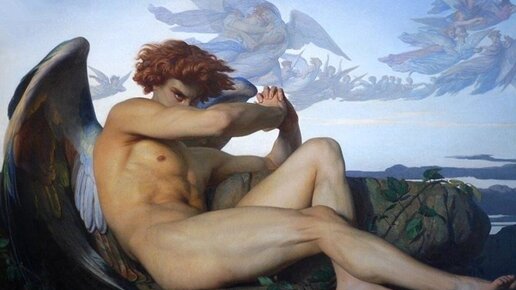 Перед Вами картина Александра Кабенеля -" Падший Ангел". Картина вызывает противоречивые чувства...С одной стороны - жаль его,он изгнан из рая из-за непростительного поведения( из-за бесов внутри)... С другой стороны- он ничего не понял, что сделал, не осознал, видимо он должен пройти этот жизненный урок! Что же мы видим на картине: Падший ангел смотрит очень зло, его взгляд полон возмездия и ярости. Он хочет отомстить за свое изгнание из Рая! Почему же Падшего ангела изгнали из рая ?! Изначально, Падший Ангел был преданным соратником Бога...