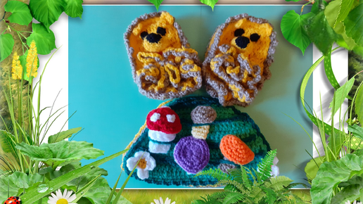 Развивающий набор крючком «Ежики на грибной полянке». Двусторонняя корзинка – полянка с грибочками – пальчиковый театр!