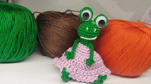 Лягушка крючком для пальчикового театра. Подробное описание вязания.