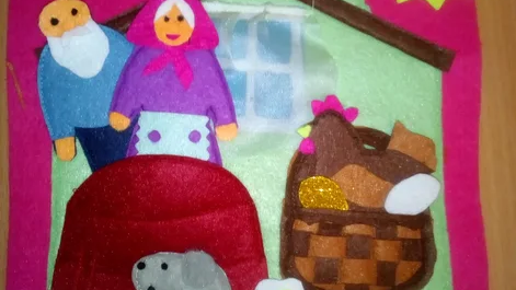 Вторая сказка в новой развивающей книжке из фетра №2 Сказки - это сказка Курочка Ряба. Она будет на одной странице.