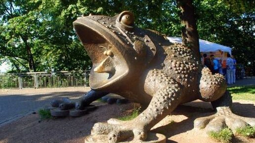 Этот памятник является едва ли не самым оригинальным из всех памятников, установленных в Киеве. Памятник являет собой здоровенную жабу из бронзы, причём передние лапы животного хищно навалились на монеты...