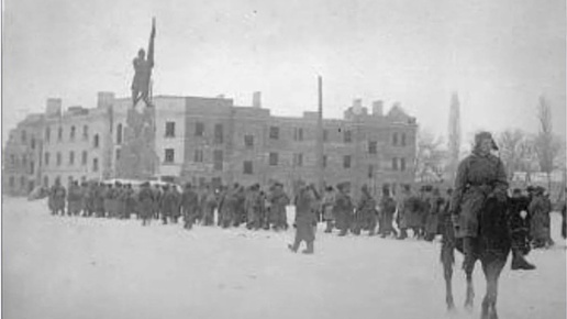 Памятник Ермаку в городе Новочеркасск, Ростовская область, во время фашистской оккупации, примерно август 1942 года. В конкурсе проектов принимали участие лучшие скульпторы второй половины 19 века: М. М. Антокольский и М. О. Микешин. Только второй вариант проекта Микешина получил одобрение, но создать памятник скульптор не успел, в 1896 году он умер. Через несколько лет работу над монументом продолжил профессор Петербургской Академии художеств Б. А. Беклемишев и 6 мая 1904 года памятник Ермаку в Новочеркасске был открыт...
