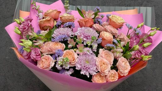 Весенняя симфония Стоимость: 15000 рублей Размер: 70*75 Описание букета: Роза Роза кустовая Матиолла Хризантема Лизиантус Альстромерия Статица Декоративная зелень Дизайнерская упаковка Оформить заказ: - Звоните/пишите ватсап +7 999 009 75 00 Комендантский пр...