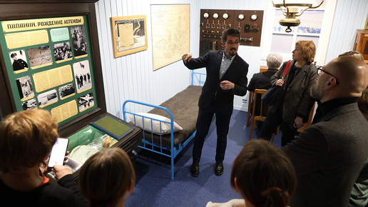 В визит-центре «Арктическое посольство» национального парка «Русская Арктика» открылась выставка, посвященная 130-летию со дня рождения Папанина. Экспозиция – собирательный образ советской полярной станции. В интерьер кают-компании вписаны элементы других зон: метеокабинета и радиорубки. Выставочное пространство наполнено аутентичной мебелью и предметами быта, например, исправным патефоном. Но главную ценность представляют подлинные экспонаты: три предмета со станции «Северный полюс-1»:...