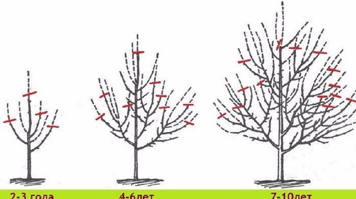 Этот метод снижения высоты кроны дерева применяется в одновном на деревьях на сильно послом семенном по двое. Сначала формируем несколько ярусов, имеющих 6—8 скелетных ветвей, проводник срезаем на боковую ветвь...