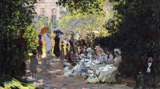 "Парк Монсо" Клода Моне - это очаровательное изображение залитого солнцем парка. Здесь мы видим пышную зеленую дорожку, обсаженную деревьями, вдоль которой сидит группа элегантно одетых людей. Рассеянный свет, проникающий сквозь листву, придает пейзажу безмятежность и мечтательность. Клод Моне, один из основоположников импрессионизма, известен своей способностью улавливать мимолетные эффекты света и атмосферы...