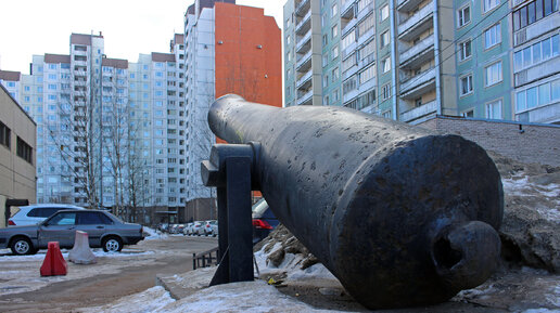 То, чего так не хватает в современных спальных районах Санкт-Петербурга, так это исторических объектов (памятных артефактов), которые могли бы рассказать гостям Северной столицы, активно заселяющихся в новостройки, хоть что-то об истории нашего города. Да чего говорить, даже в тех районах, которые строились ещё в советское время таких мест крайне мало. Но они, всё же, имеются. В 5-ти минутах пешего шага от метро Проспект Просвещения во дворе дома номер 32 корпус 1 по пр. Просвещения можно увидеть старинный артиллерийский ствол...