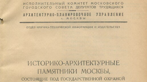 Первые попытки систематизировать московские памятники архитектуры были предприняты еще до революции. Комиссия по сохранению древних памятников, возникшая еще в 1870 году при Московском археологическом обществе, на своем заседании 27 апреля 1905 года выработала восемь пунктов, которые гласили следующее: а) издание "Древностей Москвы" начать немедленно отдельными выпусками и монографиями; б) описание памятников исполняется членами Общества, исследовавшими памятник, при участии членов общества, приглашенных...