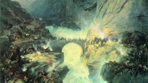 Переход через Альпы стал самым трудным испытанием в жизни великого полководца. В 1799 году русские войска с боем прошли по Чёртову мосту через ущелье Ройс на юге Швейцарии. Это сражение вошло в легенды. В то время Чёртов мост представлял собой узкую каменную арку 1595 года постройки, длиной около 25 метров, переброшенную над бурным грохочущим потоком на высоте 22—23 метра. Дорога к Чёртову мосту от деревни Урзерн проходила через узкий (шириной до 3-х метров) туннель «Урзернская дыра» длиной около 60 метров, оборонявшийся французским отрядом...