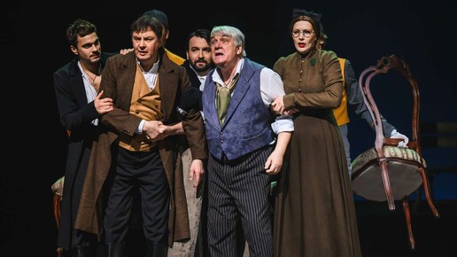 За последние три с половиной года Вахтанговский театр приезжает в Пермь третий раз, привозя свои лучшие сценические решения. Летом 2021-го состоялись масштабные гастроли с четырьмя названиями в афише, которая открывалась «Евгением Онегиным», визитной карточкой театра. В январе 2023-го прошли четыре показа потрясающей пятичасовой «Войны и мира» Римаса Туминаса. И уже кажется: время после зимних каникул в Перми – это время Театра Вахтангова. И уже никто в гардеробе Театра-Театра не спрашивает, что это за гора подушек в углу...