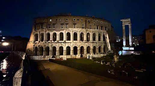 А это прадед Колизея — построенный почти за век до него, театр Марцелла. Это первый каменный театр в Риме — задуманный ещё Юлием Цезарем, завершённый Октавианом Августом и названный в честь Марцелла, рано умершего племянника первого римского императора. Когда-то здесь собиралось до двадцати тысяч зрителей, чтобы смотреть комедии и драмы, а вовсе не гладиаторские бои. Здесь же раздавали благотворительную помощь от императора. Позже, в Средние века, руины театра превратились в крепость, а его своды заняли торговцы и ремесленники...