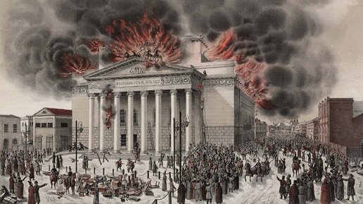 В этот день огонь полностью уничтожил здание Большого театра. Пламя бушевало так сильно, что от величественного сооружения остались лишь каменные стены. Причина — неисправность печной трубы во время репетиции оперы «Руслан и Людмила». За несколько дней до пожара рабочие театра рассказывали о странных явлениях (читайте о других странных явлениях). Ночной сторож клялся, что видел тень, которая двигалась по сцене и исчезала в районе печной трубы. Он даже сообщил об этом руководству, но его слова сочли выдумкой...