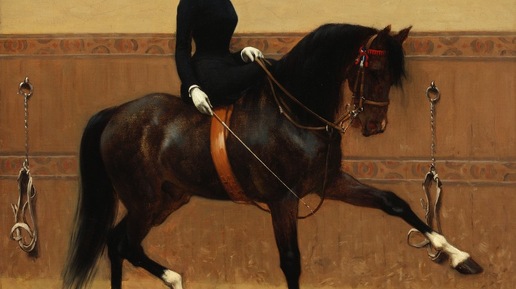 Французский художник Эдмон Жорж Гранжан (1844–1908), обучавшийся в Школе изящных искусств в Париже, любил писать оживленные улицы Парижа Хотя темы, связанные с лошадьми, также занимают видное место в его творчестве. Несмотря на лаконичность композиции и элегантности позы изображенной женщины, перед нами портрет одной из самых известных цирковых наездниц своего времени. Элиза Петцольд путешествовала по всей Европе, завоевав признание в Вене, Дрездене и Берлине в период с 1875 по 1885 год. Среди её учеников была даже императрица Елизавета Австрийская...