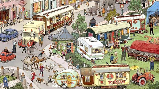 Одно из любимых занятий детей - рассматривать картинки, ведь так они познают мир и взаимодействие в нём. А немецкий иллюстратор Питер Кнорр как нельзя лучше даёт такую возможность. В его иллюстрациях можно заблудиться, можно долго гулять по нарисованным улицам и следить за происходящими событиями. За каждым поворотом мы видим новую сценку, за каждым деревцем разворачивается новая история жизни. Если сложить все картинки, кажется, перед нами предстанет целый город со всеми его районами от центра до окраин...