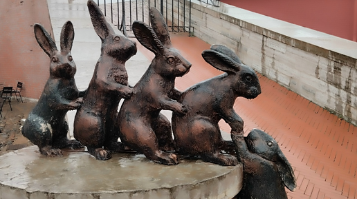 В Петропавловской крепости в Санкт-Петербурге установлено несколько фигур зайцев в виде скульптур.