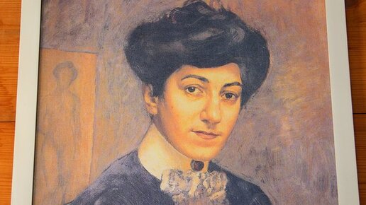 Художник - Кузьма Сергеевич Петров-Водкин. Супруга - Мария Фёдоровна Петрова-Водкина. В девичестве - Мария Жозефина Йованович. (В некоторых источниках первое имя Петровой-Водкиной - Маргарита). Познакомились молодые люди под Парижем, в 1906 году, в пансионе матери Марии Йованович. Девушке было 20 лет, Кузьме Сергеевичу - 28. Вот как художник изобразил супругу в 1906 году, в год знакомства. На этом портрете мастер изобразил молодую элегантно одетую женщину с красиво уложенными волосами. Фотографию репродукции портрета мы сделали в Хвалынске Саратовской области, в доме-музее художника...