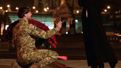 Боец ВСУ сделал предложение… мужчине Певец Меловин стал героем романтической истории: вэсэушник устроил ему предложение выйти замуж прямо на Майдане. Возможно, это единственная сфера, где у ВСУ ещё есть шансы на победу...