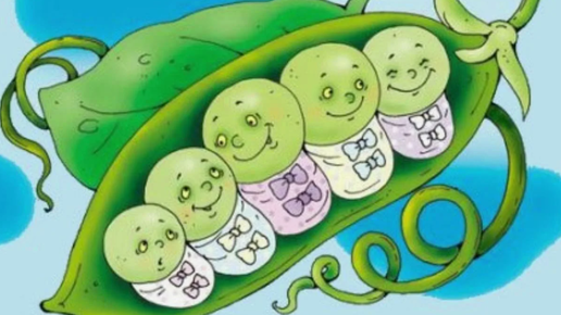 В стручке росли пять зелёных горошин — они считали весь мир зелёным, потому что сами были такими же. По мере роста стручка увеличивались и горошины, уютно располагаясь в ряд. Солнце согревало их, дождь поливал — стручок становился чище и прозрачнее. Со временем горошины задумались: нельзя вечно сидеть внутри — иначе они засохнут. Через несколько недель стручок и горошины пожелтели. Внезапно их сорвала человеческая рука и положила в карман вместе с другими стручками. Горошины решили: скоро их выпустят на волю...