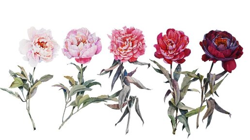 Серия из 5 пионов акварелью