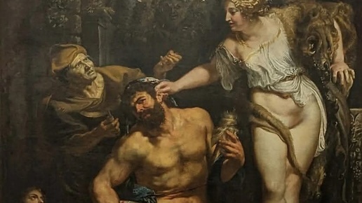Питер Пауль Рубенс Геркулес и Омфала. 1602—1605 холст, масло. 278 × 215 см Лувр, Париж, Франция. После того, как в припадке безумия Геркулес убил Евритова сына Ифита, Дельфийский оракул приговорил его к году рабства для искупления своей вины. Купленный в качестве раба царицей Лидии Омфалой, он совершает у неё на службе ряд подвигов, направленных на избавление её царства от монстров, таких как керкопы, и разбойников, таких как итоны. Омфала обязывает Геракла носить женскую одежду и прясть шерсть, пока она носит его шкуру немейского льва и булаву...