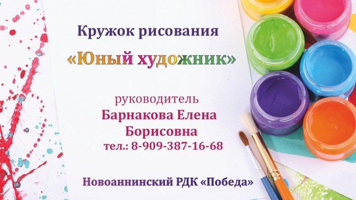 ". Приглашаем всех желающих творчески провести время и сделать первые шаги в мире искусства! Запись и дополнительная информация по телефону: 8-909-387-16-68 (Барнакова Елена Борисовна) и 8-937-743-08-33 (Ирина Валериевна Попова)...