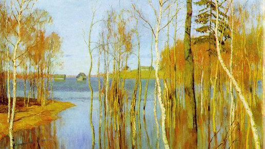 Художник Исаак Ильич Левитан, «Весна. Большая вода», 1897 — одна из немногочисленных картин художника, посвящённых весеннему пробуждению природы. Озвучена отрывком из стихотворения «Дед Мазай и зайцы»