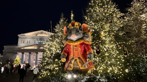 Театральная площадь в декорациях сказки Гофмана: Щелкунчик, Мышиный король и Вальс цветов. Про другие основные новогодние площадки Москвы