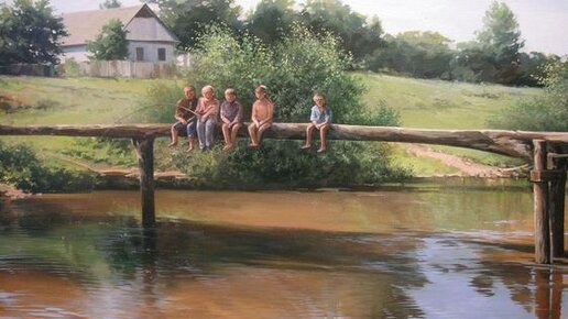 Наткнулся на картины Вячеслава Палачева и пропал! Заинтересовался художниками, которые у нас вроде никто и не знает, а на самом деле в мире они очень популярны И так Посмотрите и вы, вспомните, как это расти в деревне. Пруд на даче Гуси собираются покинуть пруд, так, как вылезают из воды и отряхивают перья. Картина навевает романтическое чувство, успокаивает и так тянет туда, в этот дивный край, взять в руки прут и погонять гусей, или поплескаться в пруду, поплавать наперегонки. Как будто вернулся в детство, прошедшее на бабушкиной даче...
