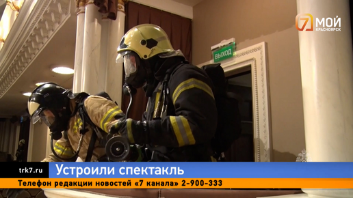 В театре Пушкина на сцену вышли пожарные. Не актеры — реальные спасатели. Заглянули в вип-ложи, гримерки, за кулисы и вывели под руки несколько довольных людей. Это, как вы уже наверное поняли, были учения. По легенде, из-за короткого замыкания загорелся театр. Пламя охватило площадь, сопоставимую с половиной нового корпуса, и четыре человека оказались заблокированы...