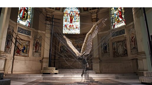 В 2008 в лондонской церкви святой Троицы Мельбурне скульптор Пол Фрайер создал инсталляцию «Да будет свет». Самый известный ее объект — это восковой «Люцифер (Утренняя звезда)» с огромными крыльями из белых перьев. У нас его назвали «Пойманный дьявол в проводах электропередачи». Скульптура Люцифера символизирует человека, подверженного ошибкам (опутавшие его провода), и последующий за этим хаос и ужас. Зал с витражами и куполообразным потолком является идеальным местом для развертывания этой драматической аллегорической сцены...