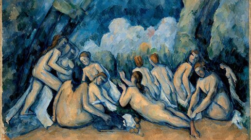 Поль Сезанн так и не стал импрессионистом... Запечатлеть вечно изменчивый облик природы в ее одномоментном великолепии художнику показалось не настолько важным, как этот облик переработать, упорядочить. Для этого он разлагал сложные фигуры на простые с помощью... геометрии. И правда, если присмотреться к работам Сезанна, можно заметить, что это сплошное нагромождение геометрических фигур – прямоугольников, квадратов, кругов... Не стала исключением и многофигурная композиция "Большие купальщицы"...