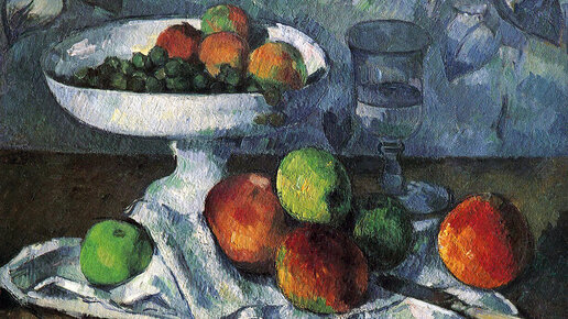 Поль Сезанн «Натюрморт с компотьером, фруктами и бокалом»