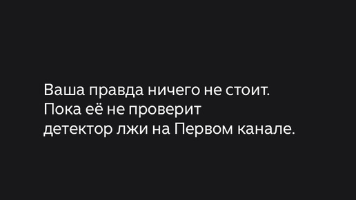 Ваша правда ничего не стоит. Пока её не проверит детектор лжи на Первом канале.