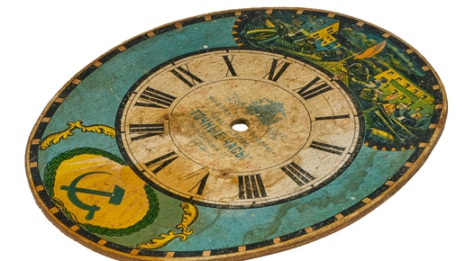 Часы с циферблатом из фанеры, оклеенной бумагой, с изображением революционных событий и советской символики — часть истории зарождающейся советской часовой промышленности. В Российской империи начала XX века часы практически не производили массово. В кустарных мастерских собирали простые ходики, но это не могло удовлетворить растущий спрос. Лидерами часового дела того времени были Германия и Швейцария, у них российские торговые дома и закупали детали. После Октябрьской революции 1917 года в молодом советском государстве наметился кризис часовой промышленности...