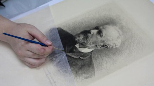 Портрет П.И. Чайковского, выполненный Я.Д. Андреевым по фотографии Л.Э. Ройтлинга в технике «офорт» поступил в мастерскую реставрации графики из Государственного музея А.С. Пушкина.⠀ Сама фотография была сделана в 1886 году в Париже в фотоателье Ch. Reutlinger, специализирующимся на портретах известных людей. Оригинал фотографии был отправлен П.И. Чайковским с дарственной надписью М.А. Балакиреву – главе «Могучей кучки».⠀ При поступлении на реставрацию присутствовало общее сильное пожелтение листа, поверхностные загрязнения, изломы, разрывы бумаги, небольшие пятна...
